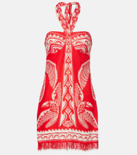 Farm Rio's signature vibrant prints celebrate the brand's Brazilian heritage and invite joyful self-expression, as captured by the Majestic Coconut Tree minidress. This style is entirely made of linen and shaped into an halterneck silhouette with a fringed hem. Product Details - Material: 100% linen - Care instructions: hand wash - Made in China - Designer color name: Majestic coconut Tree Red - Item color: red - Closure: invisible zipper - Self-tie neck - Item number: P01070853 Size & Fit - True to size - Elasticated top - Cinched waist - Non-stretchy fabric - The model seen in the picture is 178cm-5'10" and wearing a size XS