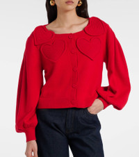 Farm Rio's signature vibrant colors celebrate the brand's Brazilian heritage and invite joyful self-expression. This cardigan is crafted from a soft yarn and features charming heart-shaped patch appliques and balloon sleeves. Product Details - Material: 47% wool, 38% viscose, 10% polyamide, 5% cashmere - Care instructions: dry clean - Made in China - Designer color name: Red - Item color: red - Cuff: ribbed - Closure: buttoned front - Hem: ribbed - Item number: P01111981 Size & Fit - True to size - Straight fit - Slightly stretchy fabric - Falls to the hip - The model seen in the picture is 178cm-5'10" and wearing a size XS