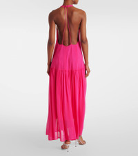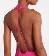 Farm Rio’s signature vibrant prints celebrate the brand's Brazilian heritage and invite joyful self-expression. The Pink Flower halterneck maxi dress features a floral applique, a cascading silhouette, and an open back. Product Details - Material: 100% viscose - Care instructions: machine wash at 30 degrees - Made in India - Designer color name: Pink - Item color: pink - Lining: 100% viscose - Trim: 100% polyester - Closure: zipped side, buttoned back - Item number: P01070699 Size & Fit - True to size - Low back - Designed for a loose fit - Non-stretchy fabric - The model seen in the picture is 178cm-5'10" and wearing a size XS
