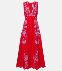 Red Porcelain Garden Euroflax™ Premium Linen Midi Dress