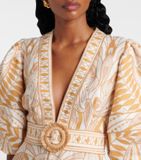 Printed belted linen minidress