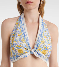 Embrace warm-weather elegance in this lightweight cotton bra top from Farm Rio. Featuring a flattering V-neckline, open back, and self-tie front, the design is elevated by an intricate all-over print. Product Details - Material: 100% cotton - Care instructions: machine wash cold - Made in China - Designer color name: Aracati Multicolor - Item color: multicolor - Item number: P01070683 Size & Fit - True to size - Low back - Fitted - Adjustable hem - Non-stretchy fabric - Cropped - The model seen in the picture is 178cm-5'10" and wearing a size XS