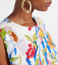 Farm Rio's signature vibrant prints celebrate the brand's Brazilian heritage. This linen-blend crop top features a round neckline and a loose silhouette, with a button fastening that creates a back slit. Product Details - Material: 55% linen, 45% viscose - Care instructions: machine wash at 30 degrees - Made in China - Designer color name: Fresh Table Off-White - Item color: white, multicolor - Lining: 100% viscose - Item number: P01070679 Size & Fit - True to size - Low back - Non-stretchy fabric - Cropped - The model seen in the picture is 178cm-5'10" and wearing a size XS