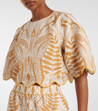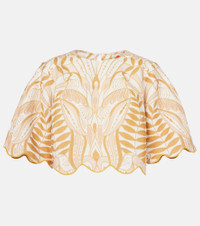 Farm Rio's signature vibrant prints celebrate the brand's Brazilian heritage and invite joyful self-expression. Decorated all over with an enchanting nature-inspired pattern, this top is crafted from pure, lightweight linen into a relaxed, lightly cropped silhouette with scalloped trims. Product Details - Material: 100% linen - Care instructions: hand wash - Made in China - Designer color name: Off-White - Item color: multicolor - Item number: P01056527 Size & Fit - True to size - Designed for a loose fit - Non-stretchy fabric - Cropped - The model seen in the picture is 178cm-5'10" and wearing a size XS