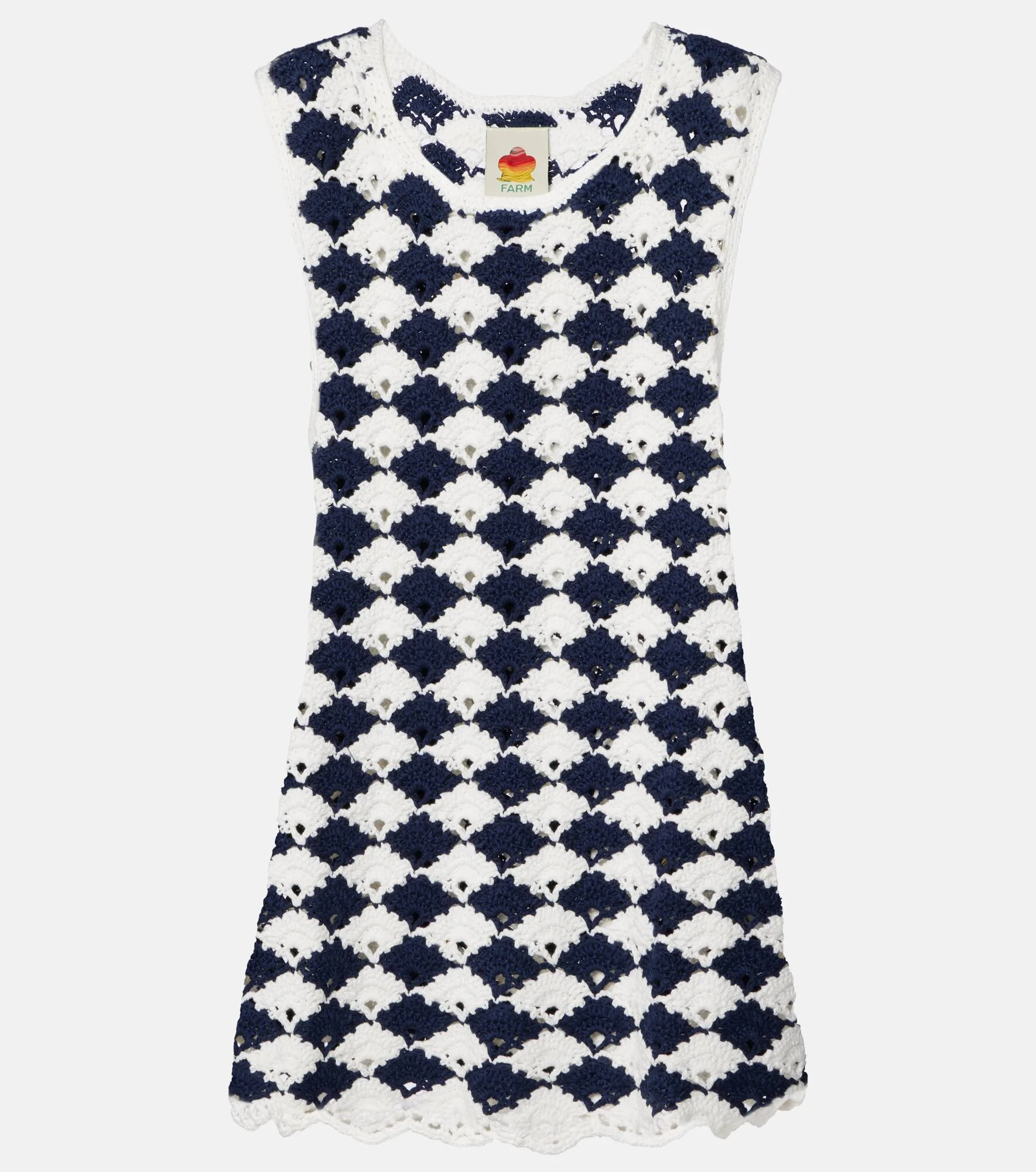 Farm Rio's ethos revolves around celebrating Brazilian cultural heritage, finding inspiration in diverse landscapes. This playful top is crocheted into a scalloped silhouette with wide shoulder straps. Product Details - Material: 100% acrylic - Care instructions: hand wash - Made in China - Designer color name: Blue And White - Item color: blue, white - Item number: P01120729 Size & Fit - Fits large to size - we recommend trying one size smaller - Designed for a loose fit - Slightly stretchy fabric - Falls below the hip - The model seen in the picture is 178cm-5'10" and wearing a size XS