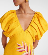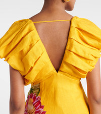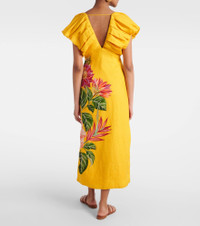 Farm Rio's signature vibrant prints celebrate the brand's Brazilian heritage and invite joyful self-expression. Meticulously made from breathable linen, the Spring Awakening midi dress features a ruffled V-neckline and is enriched with a vivid floral print for a charming finish. Product Details - Material: 100% linen - Care instructions: hand wash - Made in China - Designer color name: Spring Awakening Off-White - Item color: yellow - Lining: 100% viscose - Item number: P01056501 Size & Fit - True to size - Low back - Cinched waist - slit length 42cm-16.5" - Height of model is 177cm-69.5" and wears a size XS