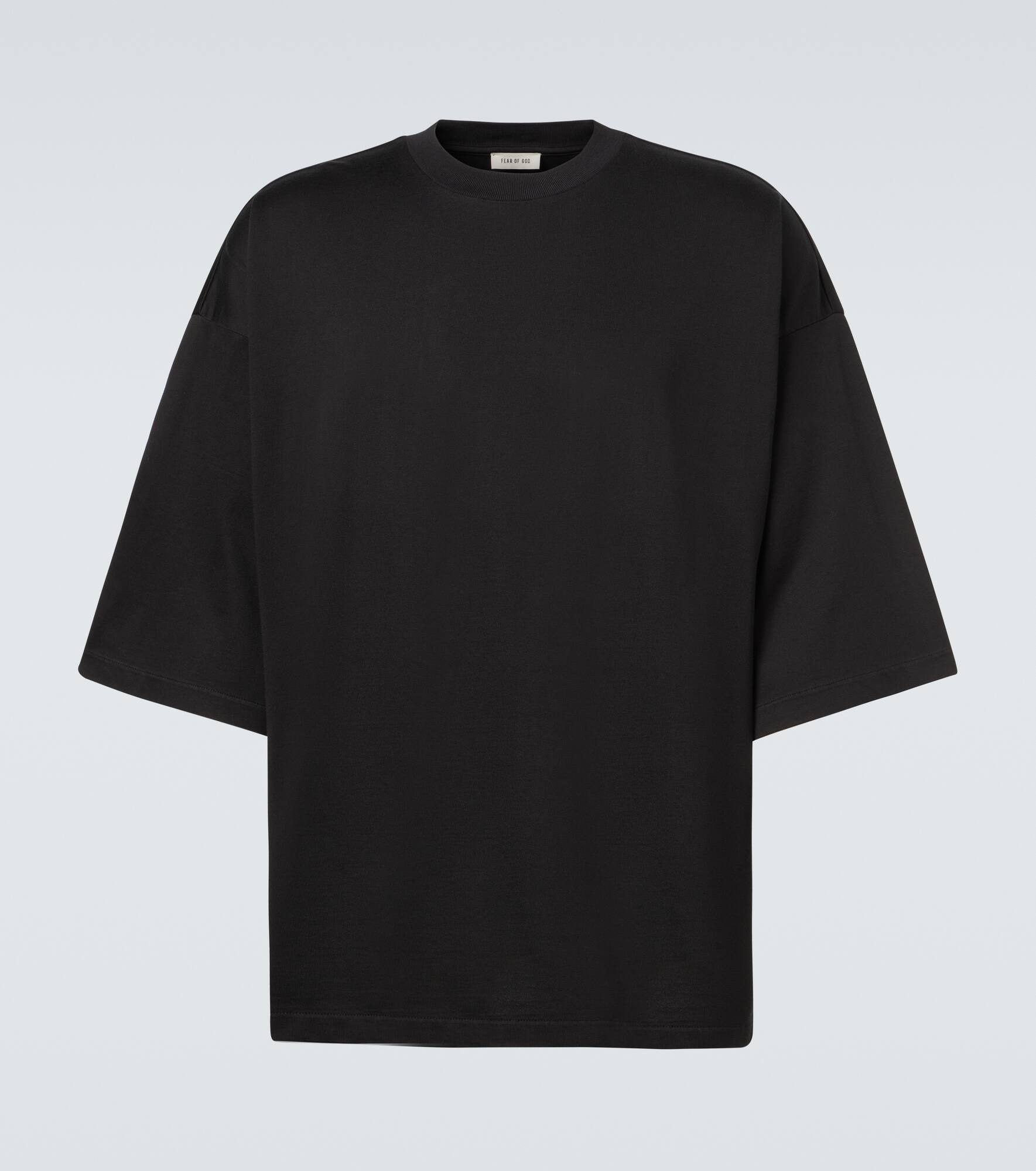 Minimalist lines and streetwear codes establish the groundwork for Fear of God’s ethos. Designed with an oversized silhouette, this T-shirt is made in Portugal from cotton-blend jersey. Product Details - Material: 60% cotton, 40% viscose - Care instructions: machine wash cold - Made in Portugal - Designer color name: Black - Item color: black - Trim: 53% cotton, 47% viscose - Collar: crewneck - Sleeves: raglan - Relaxed fit - Item number: P01063807 Size & Fit - True to size - Dropped shoulders - Oversized - Slightly stretchy fabric - Falls below the hip - Height of model is 189cm-74.5" and wears a size L