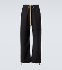 Minimalist lines and streetwear codes establish the groundwork for Fear of God’s ethos. Made in Italy from technical fabric, these pants feature a wide-leg style with a drawstring waistband. Product Details - Material: 60% polyester, 28% wool, 9% polyurethane, 3% elastane - Care instructions: dry clean - Made in Italy - Designer color name: Black - Item color: black - Elasticated drawstring waist - Pockets: slant pockets - Item number: P01063834 Size & Fit - True to size - Elasticated waist - Adjustable at the waist - Non-stretchy fabric - Wide-leg - Low inseam - Height of model is 189cm-74.5" and wears a size L