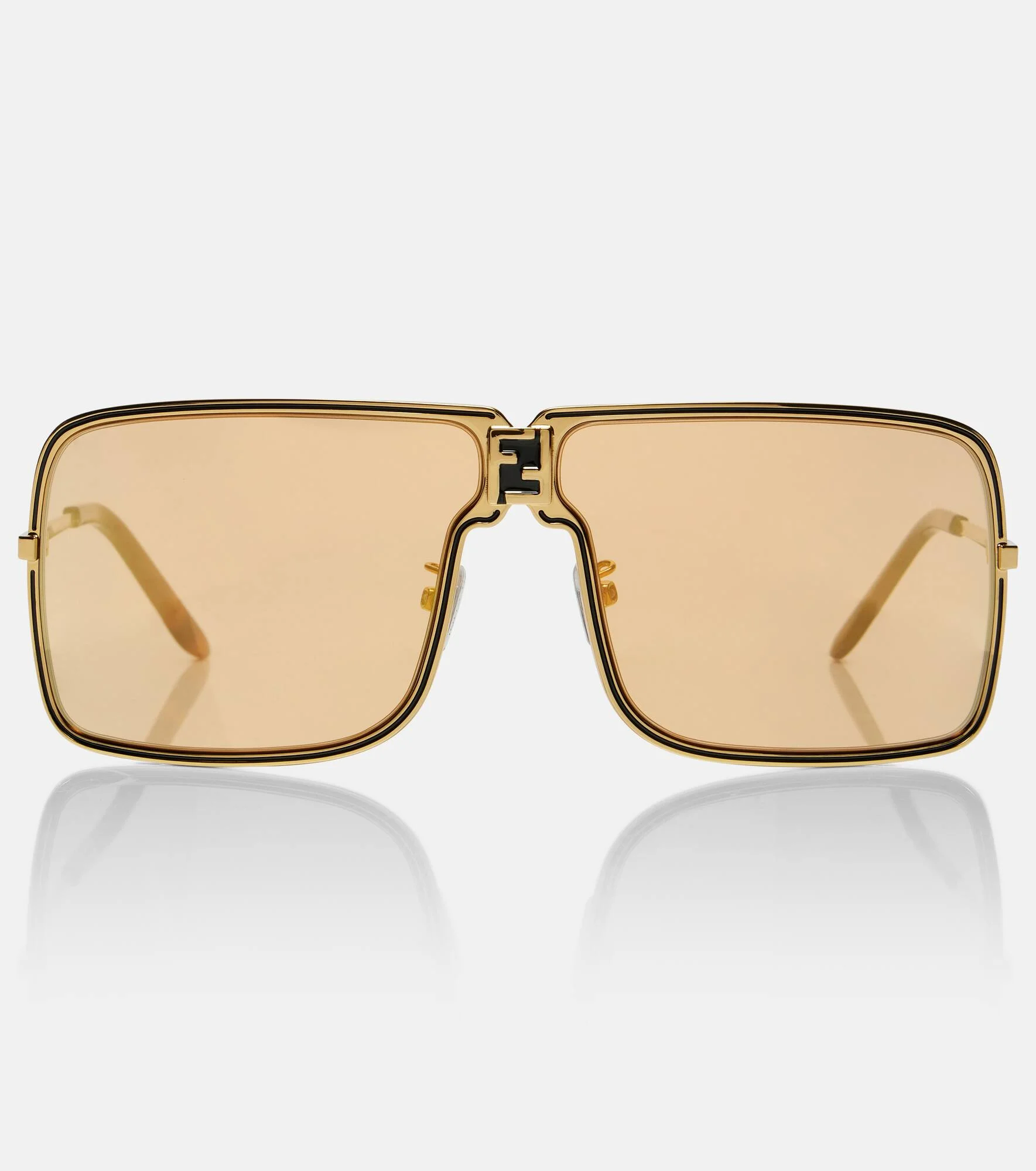 Italian heritage is at the heart of Fendi, whose styles honor artisanal savoir-faire with a contemporary twist. The Fendiness sunglasses are designed with an aviator silhouette and boast metal frames and the signature FF monogram on the bridge. Product Details - Frame material: metal - Frame color: gold - Lens filter category 1 - Lens color: golden yellow - Made in Italy - Includes: cleaning cloth, case and presentation box - The color of the case may vary - Item number: P01098157 Size & Fit - Lens width: 67mm-2.65" - Bridge size: 10mm-0.4" - Earpiece length: 140mm-5.5"