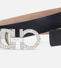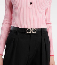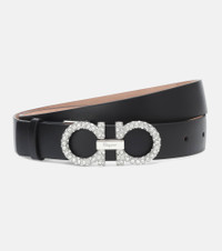 You can't overestimate how often you'll wear this black leather belt from Salvatore Ferragamo. Serving as the buckle, the iconic Gancini symbol is finished in crystal-encrusted silvertone hardware. It's elegant, opulent, and practical, too – so you can wear it from work to cocktail hour. Product Details - Color of fastening: silver - Material: leather - Comes with dust bag - Made in Italy - Item number: P00487030 Size & Fit - Width 2,5cm-1"