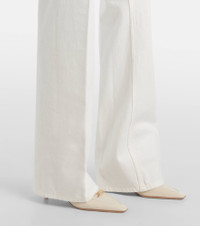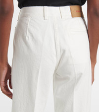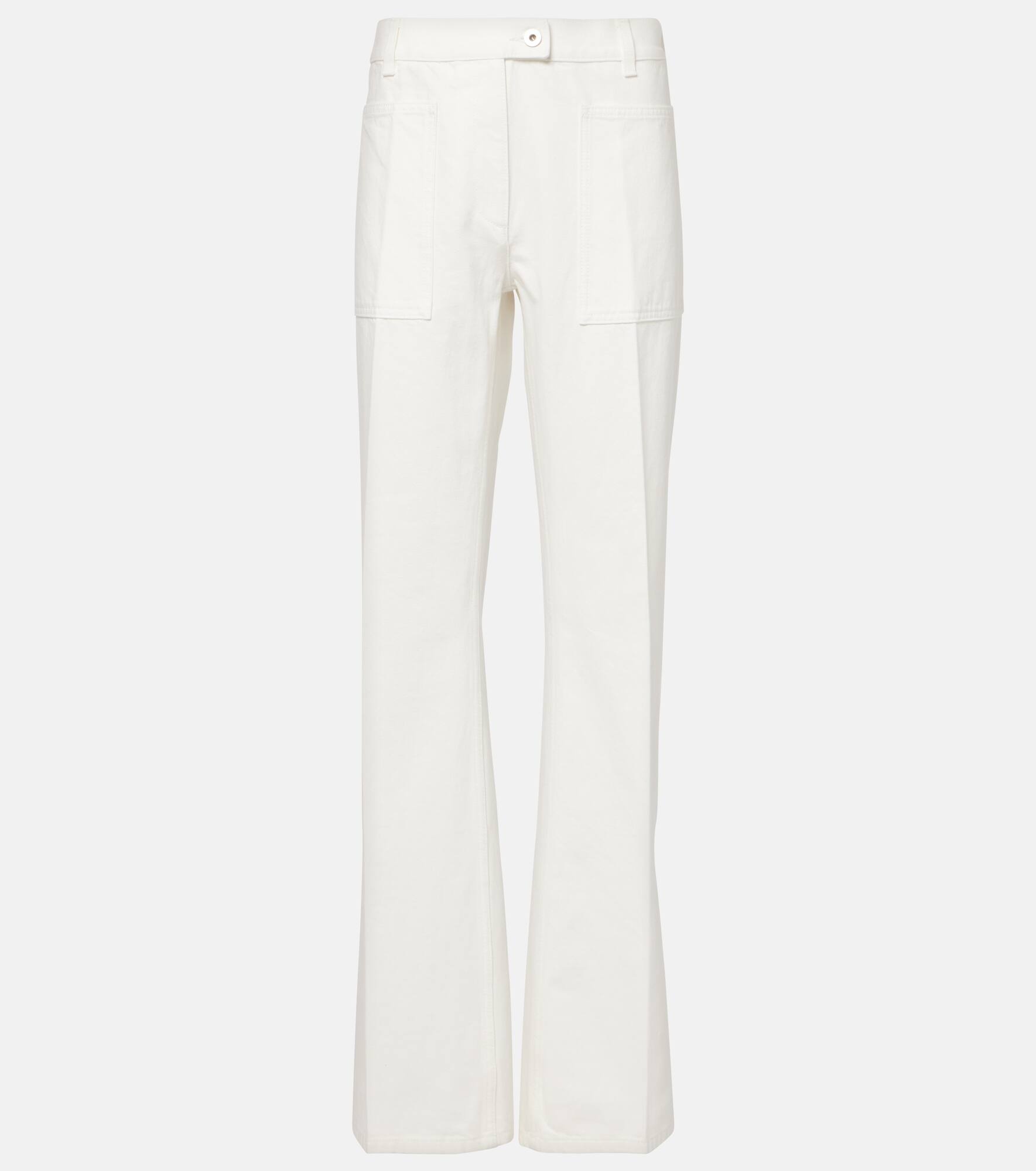 Product Details - Material: 100% cotton - Care instructions: hand wash - Made in Italy - Designer color name: White - Lining: 65% polyester, 35% cotton - Closure: zip and button fastening - Pockets: patch pockets, back pocket - Belt loops - Details: 100% leather - Contains non-textile parts of animal origin - Item number: P01005716 Size & Fit - True to size - Non-stretchy fabric - Straight leg - Mid-rise - The model seen in the picture is 178cm-5'10" and wearing a size IT 40