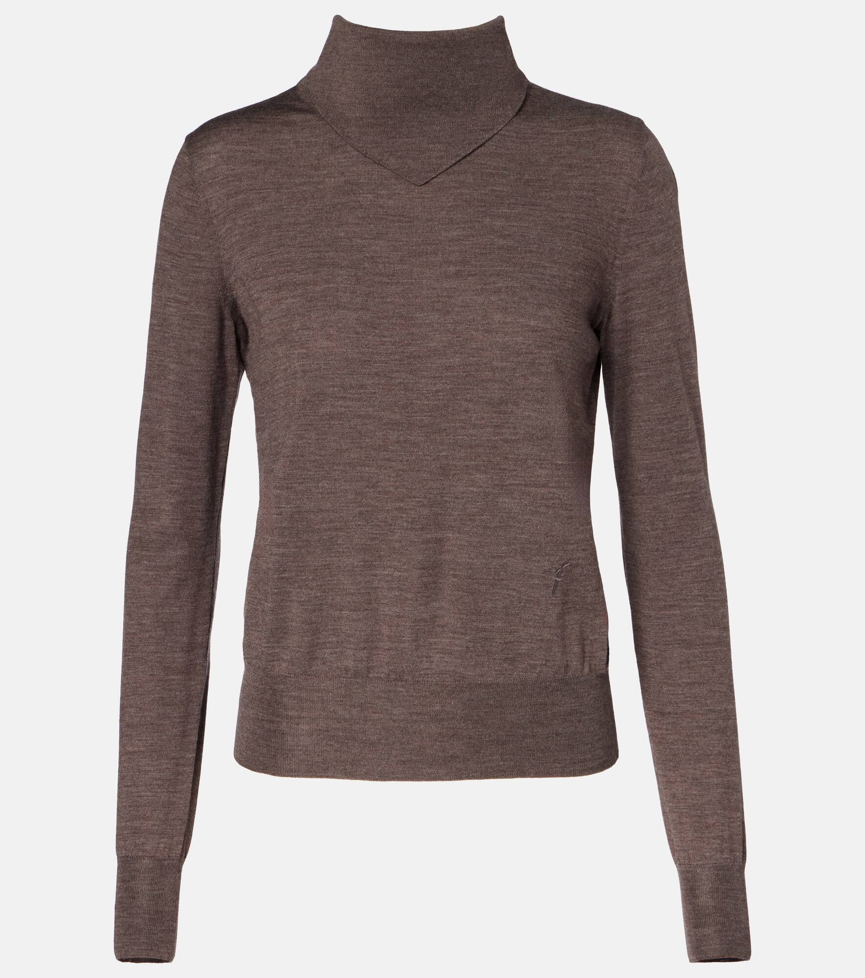 Ferragamo's elite reputation rests upon unparalleled Italian craftsmanship and a legacy of elegance. Primed for effortless layering, this turtleneck sweater is made from soft wool and features ribbed trims. Product Details - Material: 100% wool - Care instructions: dry clean - Made in Italy - Designer color name: Concrete Melange - Item color: brown - Sleeves: long-sleeved - Cuff: ribbed - Hem: ribbed, straight - Item number: P01059350 Size & Fit - True to size - Straight fit - Stretchy fabric - Falls to the hip - The model seen in the picture is 178cm-5'10" and wearing a size XS