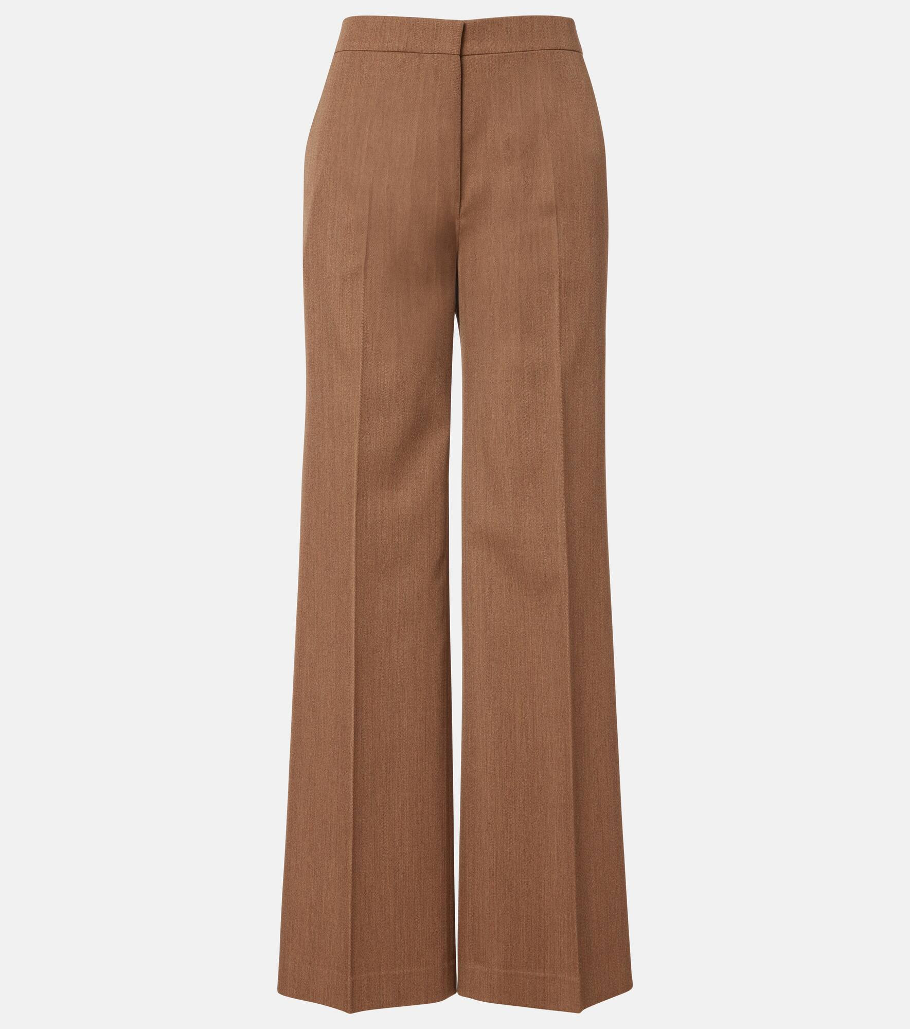 Minimal and exquisitely discreet, Fforme's designs radiate understated refinement. Crafted from virgin wool, the Agel wide-leg pants are tailored to a high-rise silhouette with elegant front creases and a concealed fastening. Product Details - Material: 100% virgin wool - Care instructions: dry clean - Made in Italy - Designer color name: Camel Melange - Item color: beige - Lining: 100% cotton - Closure: zipper fly, button and hook fastenings - Pockets: side slit pockets, back pockets - Item number: P01086108 Size & Fit - True to size - Non-stretchy fabric - Wide-leg - The model seen in the picture is 178cm-5'10" and wearing a size IT 40