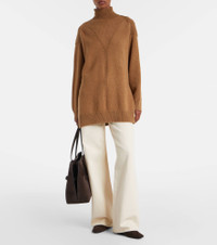 Embrace refined elegance with the Malina blazer from Fforme. Crafted from soft wool and cashmere, the Loletta turtleneck sweater features a longline, oversized silhouette with ribbed trims. Product Details - Material: 70% wool, 30% cashmere - Care instructions: dry clean - Made in Italy - Designer color name: Camel Melange - Item color: beige - Collar: turtleneck - Hem: ribbed - Cuff: ribbed - Side slits - Item number: P01086113 Size & Fit - True to size - Dropped shoulders - Oversized - Non-stretchy fabric - Falls below the hip - slit length 29cm-11.5" - The model seen in the picture is 178cm-5'10" and wearing a size XS