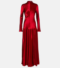 Minimal and exquisitely discreet, Fforme's designs radiate understated refinement. The Mila satin maxi dress boasts a floor-length, sleek silhouette with a dropped waistline and features long sleeves and a high neck. Product Details - Material: 100% viscose - Care instructions: dry clean - Made in Italy - Designer color name: Bright Red - Item color: red - Lining: 73% acetate, 27% silk - Closure: invisible zipper - Item number: P01086112 Size & Fit - Fits large to size - we recommend trying one size smaller - Cinched waist - Non-stretchy fabric - The model seen in the picture is 178cm-5'10" and wearing a size IT 38