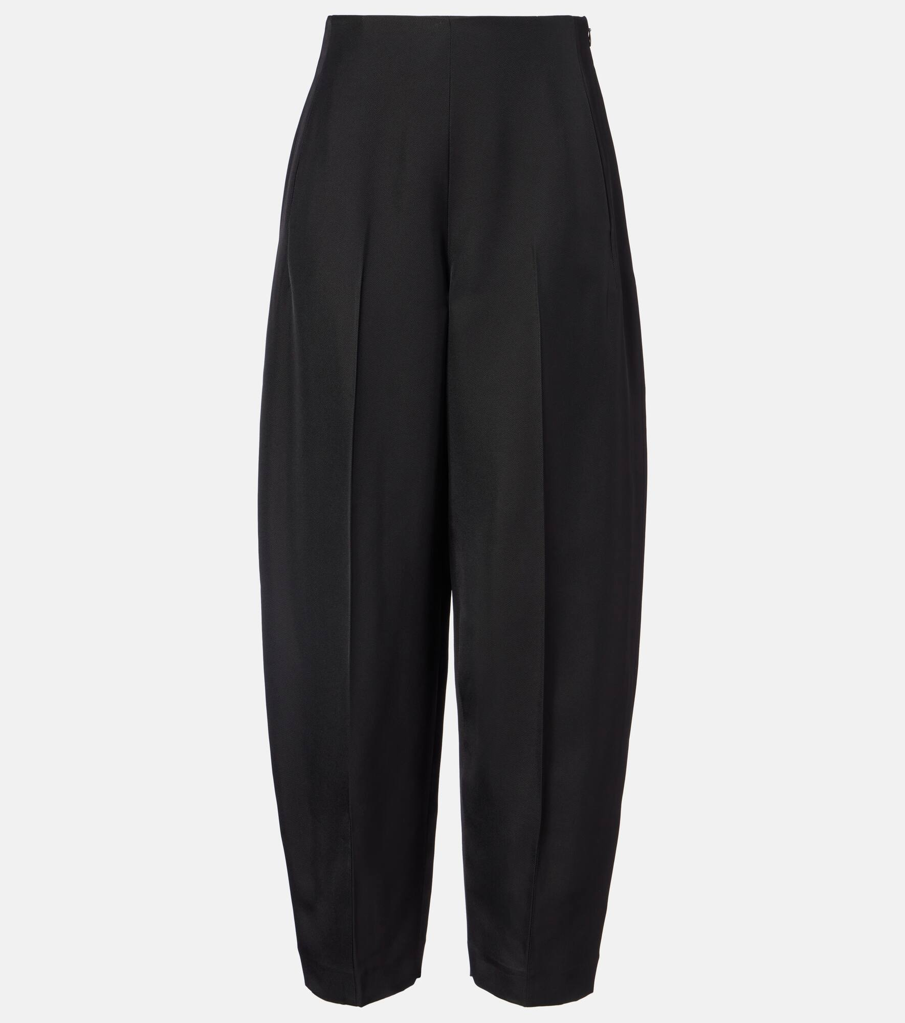 Minimal and exquisitely discreet, Fforme's designs radiate understated refinement. Made from fluid fabric to achieve the perfect drape, the Yvette pants are crafted to a barrel-leg silhouette with crisp pleats at the waist. Product Details - Material: 100% viscose - Care instructions: dry clean - Made in Italy - Designer color name: Black - Item color: black - Lining: 73% acetate, 27% silk - Pockets: side slit pockets - Closure: concealed zipped side - Single pleat - Item number: P01123742 Size & Fit - Fits large to size - we recommend trying one size smaller - Non-stretchy fabric - Tapered leg - The model seen in the picture is 178cm-5'10" and wearing a size IT 38