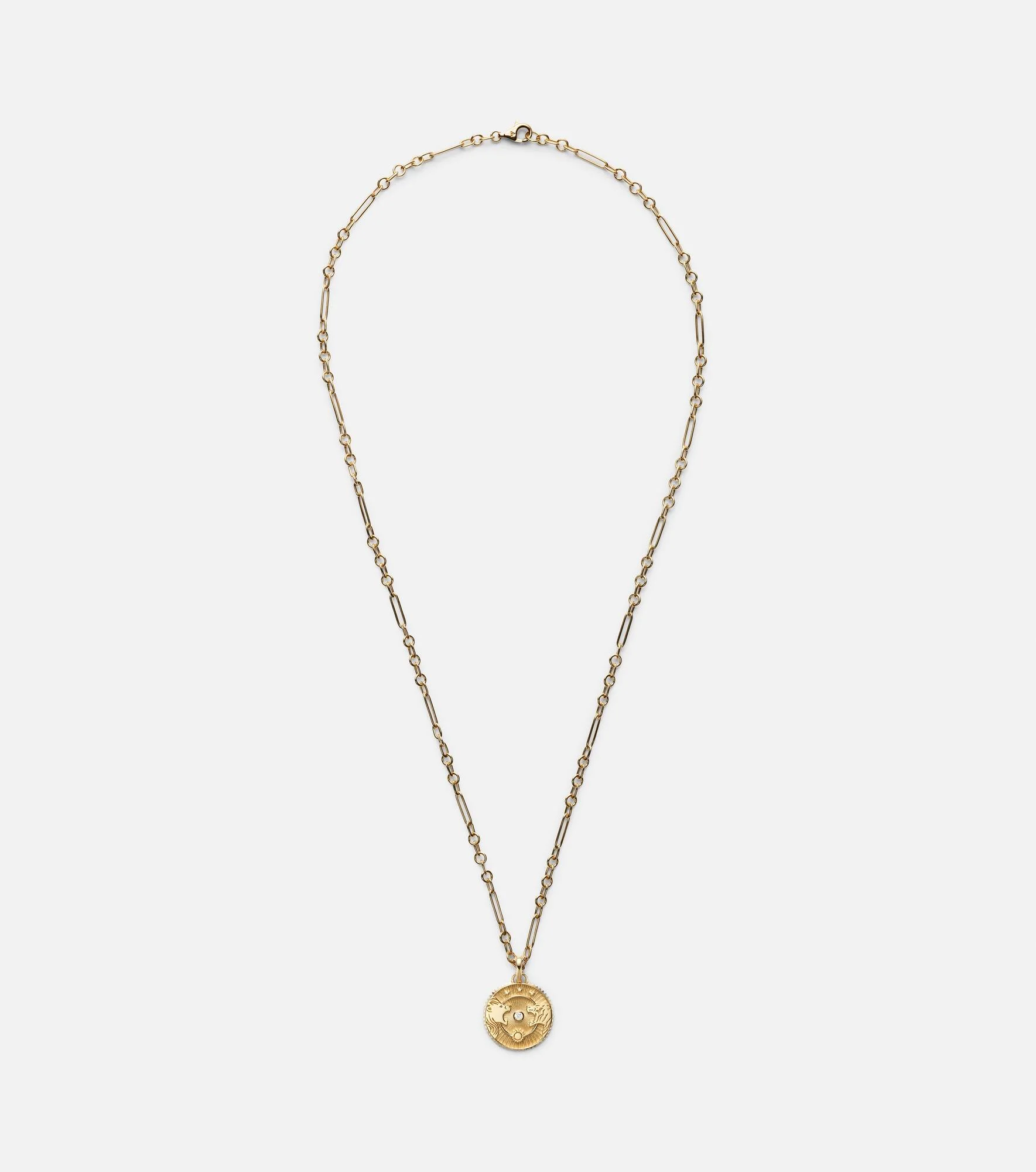 Product Details - Material: 18kt yellow gold (750/1000) - Made in the USA - Stone I: diamond, round-cut, bezel setting - Color: gold - Stone I carat total weight (ctw): 0.131 - Closure: lobster-clasp fastening - Item number: P00966015 Size & Fit - Adjustable length - Min. width 1mm-0.05" - Max. width 2mm-0.1" - Pendant length 56mm-2.2" - Pendant width 18mm-0.7"
