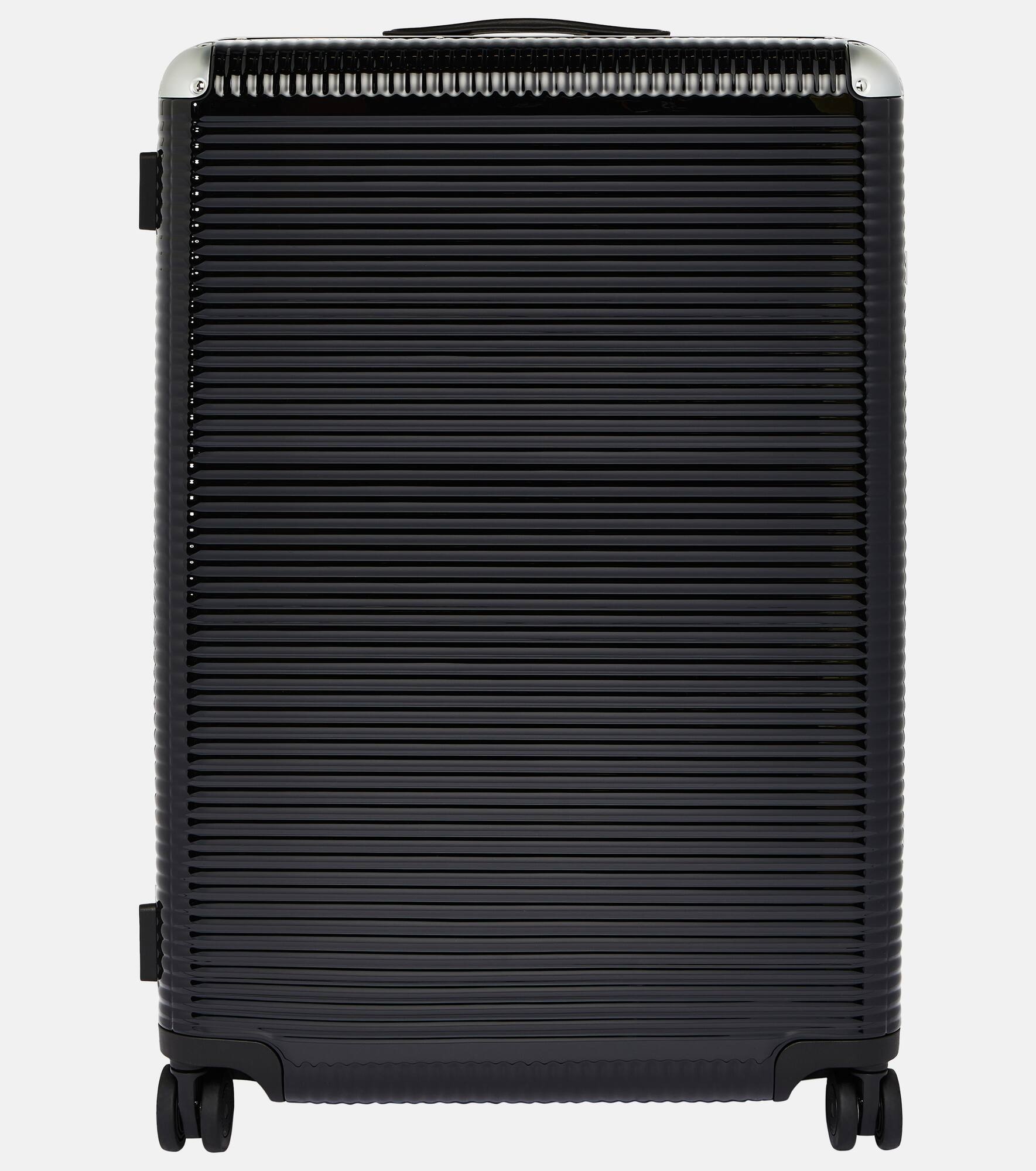 Product Details - Material: polycarbonate - Lining: fabric - Made in Italy - Designer color name: Licorice Black - Trim: leather - Internal details: two internal compartments, internal zipped and slot pockets - Adjustable top handle - Closure: lock-bar fastening - Comes with dust bag - Item number: P00873727 Size & Fit - Height 82cm-32.5" - Width 56cm-22" - Depth 34cm-13.5"