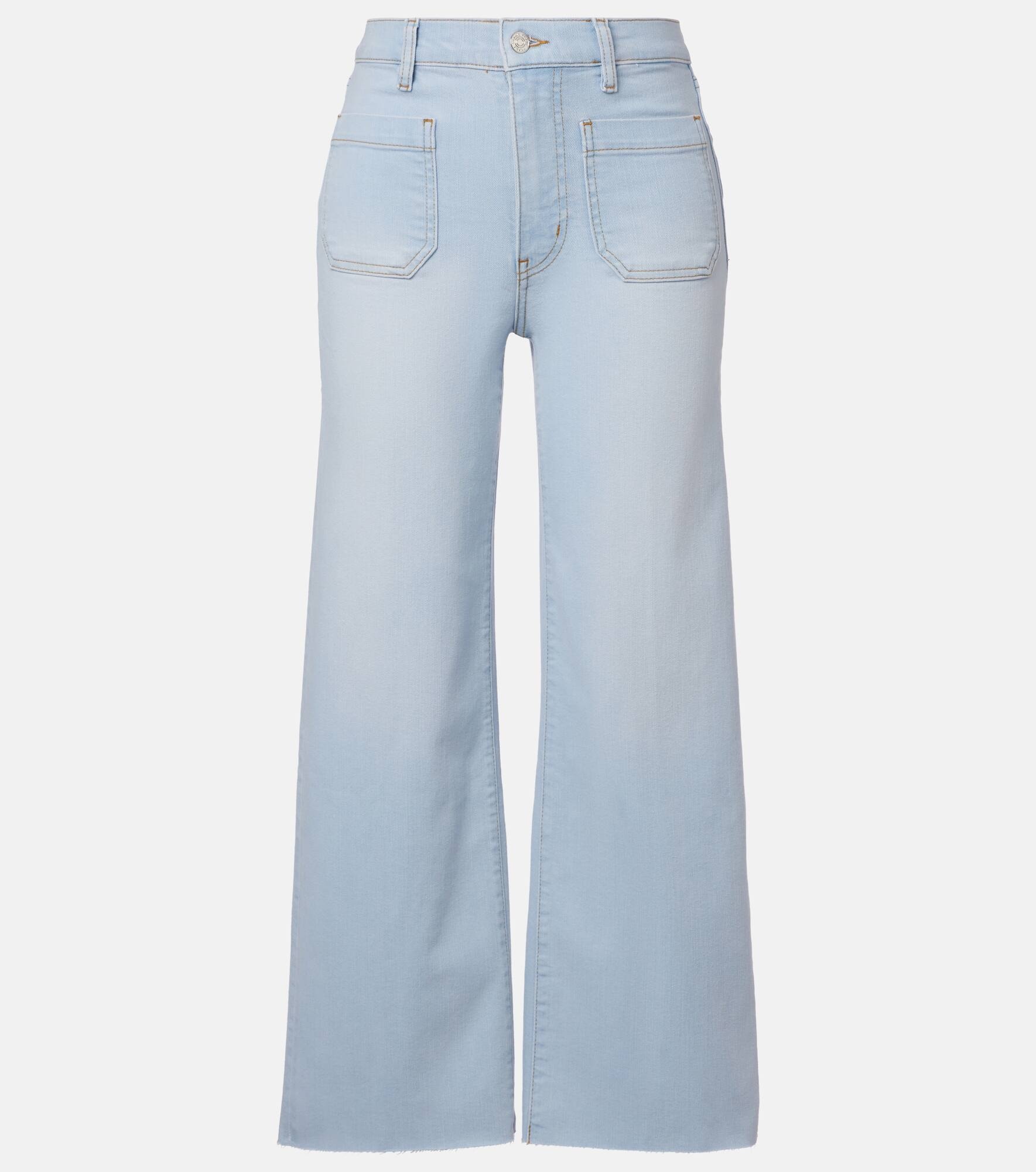Frame creates iconic denim designs using fair manufacturing practices and sustainably sourced materials. The Anchor high-rise jeans feature a wide-leg shape and stand out for the two patch pockets on the front. Product Details - Material: 49% cotton, 21% cotton (recycled), 17% polyester (recycled), 11% lyocell, 2% elastane - Care instructions: machine wash at 30 degrees - Made in Turkey - Designer color name: Float Raw Fray - Item color: blue - Hardware color: silver - Pockets: patch pockets - Hem: raw - Closure: zip and button fastening - Item number: P01055579 Size & Fit - True to size - Stretchy fabric - Wide-leg - High-rise - The model seen in the picture is 178cm-5'10" and wearing a size 26
