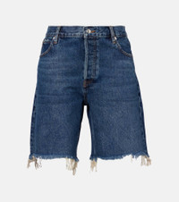 Frame creates iconic denim designs using fair manufacturing practices and sustainably sourced materials. These shorts have a high-rise silhouette and have deconstructed, undone hems. Product Details - Material: 100% cotton - Care instructions: machine wash at 30 degrees - Made in Turkey - Designer color name: Nostalgia - Item color: blue - Closure: button-down - Pockets: side slit pockets, back pockets - Belt loops - Item number: P01055565 Size & Fit - True to size - Non-stretchy fabric - Straight leg - High-rise - The model seen in the picture is 178cm-5'10" and wearing a size 26