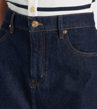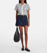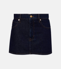 Crafted from dark denim, this miniskirt from Frame features a flattering A-line fit with a mid-rise waist. The design is complete with 5-pockets and a charming raw hem. Product Details - Material: 100% cotton (recycled) - Care instructions: machine wash at 30 degrees - Made in Turkey - Designer color name: Rinse - Item color: blue - Closure: zip and button fastening - Pockets: five pockets - Hardware color: gold - Item number: P01055577 Size & Fit - True to size - Non-stretchy fabric - The model seen in the picture is 178cm-5'10" and wearing a size 26