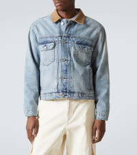 Distressed suede-trimmed denim jacket