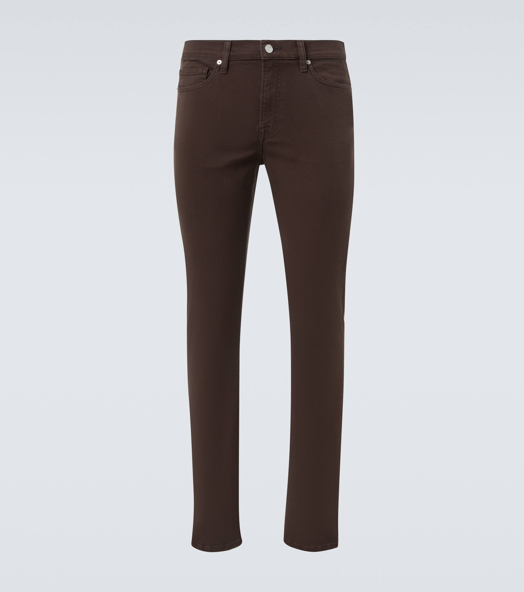Frame creates iconic denim designs using fair manufacturing practices and sustainably sourced materials. The L'Homme Slim jeans feature straight, slim legs, a mid-rise waistline, and a classic 5-pocket design. Product Details - Material: 93% cotton, 5% elastomultiester, 2% elastane - Care instructions: machine wash at 30 degrees - Made in Mauritius - Designer color name: Garage Dark Brown - Item color: brown - Item number: P01051347 Size & Fit - True to size - Non-stretchy fabric - Slim-leg - Mid-rise - Height of model is 188cm-74" and wears a size 32