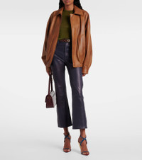 The Reboot Crop pants from Frame showcase the brand's dedication to meticulous craft and everyday sophistication. This iteration of the beloved design is made from ultra-soft leather and comes in a bootcut silhouette that hits above the ankle. Product Details - Material: 100% lamb leather - Care instructions: specialist clean - Made in Turkey - Designer color name: Dark Indigo - Item color: blue - Pockets: five pockets - Closure: zipper fly, button fastening - Belt loops - Hardware color: silver - Item number: P01055574 Size & Fit - True to size - Slightly stretchy fabric - Bootcut - The model seen in the picture is 178cm-5'10" and wearing a size 26