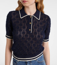 Product Details - Material: 75% cotton, 25% polyamide - Care instructions: hand wash - Made in China - Designer color name: Navy Multi - Item color: blue - Item number: P01055596 Size & Fit - True to size - Semi-sheer - Straight fit - Stretchy fabric - Slightly cropped - The model seen in the picture is 178cm-5'10" and wearing a size XS