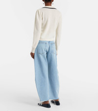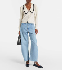 Frame’s Sailor cardigan is made from soft cashmere in a fine knit. The style features a contrast-trimmed oversized collar, tonal buttons, and ribbed edges, blending nautical charm with a polished, everyday silhouette. Product Details - Material: 100% cashmere - Care instructions: dry clean - Made in China - Designer color name: Cream Multi - Item color: white, blue - Closure: buttoned front - Cuff: ribbed - Hem: ribbed - Item number: P01099095 Size & Fit - True to size - Straight fit - Stretchy fabric - Slightly cropped - The model seen in the picture is 178cm-5'10" and wearing a size XS