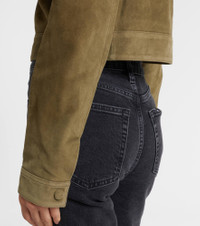 Frame presents The Small jacket in a soft suede construction, defined by a cropped silhouette and boxy fit. This design is fitted with 2 patch pockets on the front and tonal suede-coated buttons. Product Details - Material: 100% calf leather (suede) - Care instructions: specialist clean - Made in Turkey - Designer color name: Cypress - Item color: green - Lining: 63% viscose, 37% polyester - Closure: snap-buttoned front - Collar: classic (Straight point) - Cuff: buttoned - Pockets: patch pockets - Fully lined - Item number: P01098518 Size & Fit - True to size - Straight fit - Non-stretchy fabric - Cropped - The model seen in the picture is 178cm-5'10" and wearing a size XS