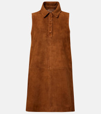 Crafted from smooth suede, this chic sleeveless minidress from Frame features a classic pointed collar and a front closure with leather-covered snap buttons. Perfect for a city escape, this piece's relaxed silhouette blends softness with sophistication. Product Details - Material: 100% lamb leather (suede) - Care instructions: specialist clean - Made in Turkey - Designer color name: Sepia - Item color: brown - Closure: partially button-down - Collar: classic (Straight point) - Item number: P01055567 Size & Fit - True to size - Designed for a loose fit - Non-stretchy fabric - The model seen in the picture is 178cm-5'10" and wearing a size US 4