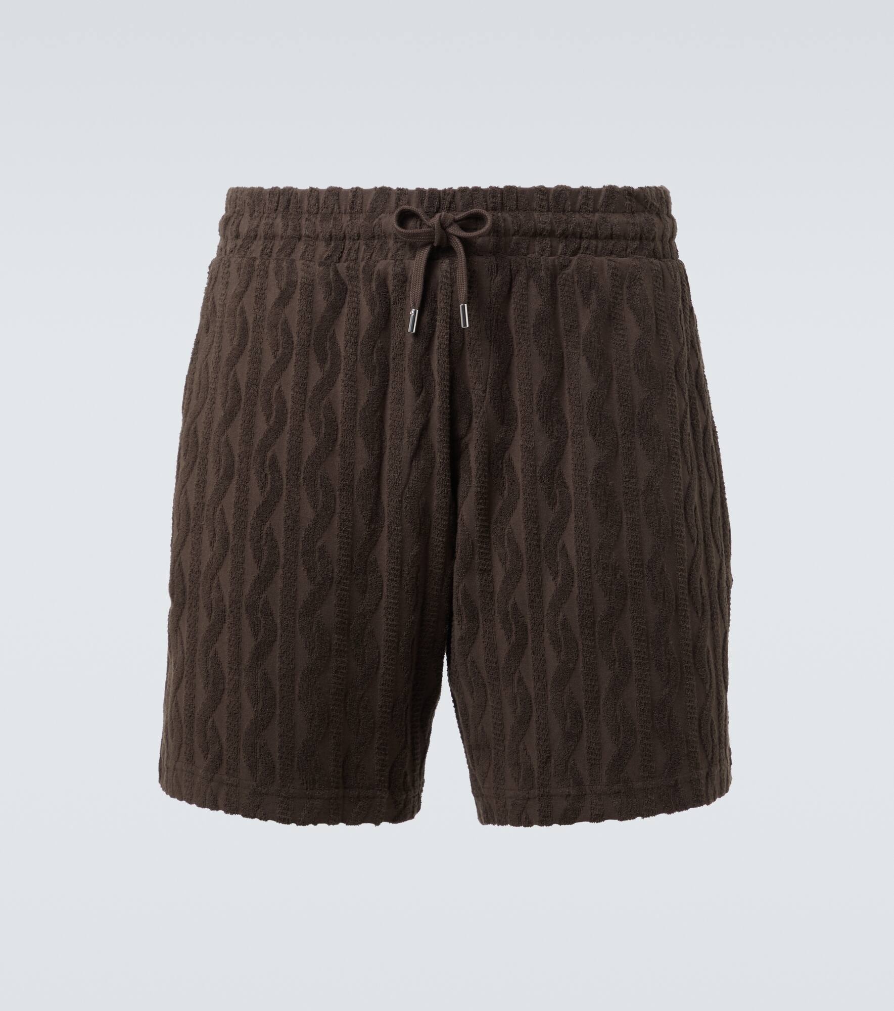 Inspired by the spirit of Rio de Janeiro, Frescobol Carioca's vacation styles effortless transition from beach to boardwalk. Crafted from pure cotton terry using jacquard fabrication, the Augusto shorts are cut to a relaxed silhouette. Product Details - Material: 100% cotton - Care instructions: machine wash at 30 degrees - Made in Portugal - Designer color name: Brown - Item color: brown - Elasticated drawstring waist - Pockets: side slit pockets - Item number: P01049229 Size & Fit - True to size - Elasticated waist - Adjustable at the waist - Stretchy fabric - Wide-leg - Height of model is 189cm-74.5" and wears a size L
