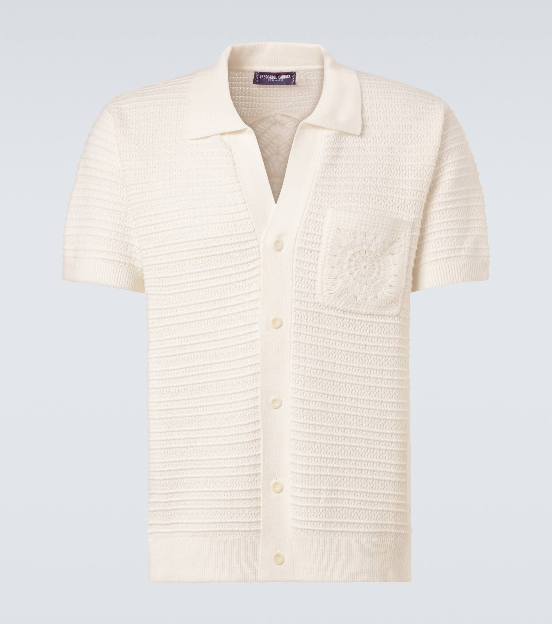 Frescobol Carioca's designs focus on high-quality materials and refined silhouettes, creating pieces for both everyday wear and sophisticated looks. The Cesar cotton shirt comes with a buttoned front and is finished with crochet detailing. Product Details - Material: 100% cotton - Care instructions: machine wash at 30 degrees - Made in China - Designer color name: Ivory - Item color: white - Collar: spread - Closure: buttoned placket - Pockets: utility chest pocket - Cuff: ribbed - Hem: ribbed - Item number: P01061389 Size & Fit - True to size - Designed for a loose fit - Slightly stretchy fabric - Falls below the hip - Height of model is 189cm-74.5" and wears a size L