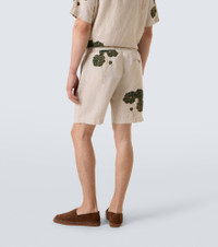 The Felipe Bermuda shorts shirt from Frescobol Carioca showcase a floral print which is inspired by Rio de Janeiro's state flower, the Begonia. This pair is cut to a relaxed silhouette and finished with an elasticated drawstring waistband. Product Details - Material: 100% linen - Care instructions: machine wash at 30 degrees - Made in Portugal - Designer color name: Ecru & Evergreen - Item color: beige, green - Closure: zipper, snap-button fastenings - Elasticated drawstring waist - Pockets: side slit pockets, back pocket - Item number: P01061407 Size & Fit - True to size - Elasticated waist - Adjustable at the waist - Non-stretchy fabric - Straight leg - Height of model is 189cm-74.5" and wears a size 32
