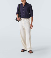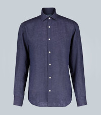 Made from Italian linen, this crisp Frescobol Carioca navy blue shirt has a pointed collar, front button-down closure and curved hem. Product Details - Care instructions: machine wash cold - Material: 100% linen - Closure: buttoned front - Designer color name: Midnight Blue - Made in Portugal - Item number: P00447069 Size & Fit - True to size - For broader shoulders we recommend taking one size up - Close fit at the neck - Regular fit - Mid-weight material - Falls to the hip - The model in the picture is 185cm-6'1" and wearing a size M