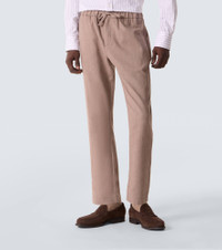 Inspired by the spirit of Rio de Janeiro, Frescobol Carioca's vacation styles effortlessly transition from beach to boardwalk. The Oscar straight pants are crafted from herringbone cotton and cashmere and are secured with an elasticated drawstring waistband. Product Details - Material: 89% cotton, 11% cashmere - Care instructions: machine wash at 30 degrees - Made in Portugal - Designer color name: Brown - Item color: brown - Pockets: side slit pockets, back pocket - Closure: zipper fly, button fastening - Elasticated drawstring waist - Item number: P01126491 Size & Fit - True to size - Elasticated waist - Adjustable at the waist - Non-stretchy fabric - Straight leg - The model in the picture is 185cm-6'1" and wearing a size 32