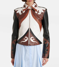 Product Details - Material: 100% lamb leather - Care instructions: specialist clean - Made in Italy - Item color: brown, white - Contains non-textile parts of animal origin - Item number: P01026153 Size & Fit - True to size - Shoulder pad inserts - Cinched waist - Non-stretchy fabric - Slightly cropped - The model seen in the picture is 178cm-5'10" and wearing a size XS