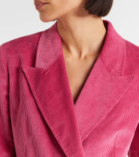 Achieve effortless elegance with Gabriela Hearst's meticulously tailored garments. The Angela cotton corduroy blazer features a classic double-breasted closure with sharp peak lapels and an elegantly defined waist. Product Details - Material: 100% cotton - Care instructions: dry clean - Made in Italy - Designer color name: Fuchsia - Item color: pink - Lining: 100% cupro - Peak lapel - Cuff: four buttons - Pockets: flap pockets, internal pocket - Closure: double-breasted (four buttons) - Vent: single - Item number: P01126018 Size & Fit - True to size - Shoulder pad inserts - Cinched waist - Non-stretchy fabric - Falls below the hip - The model seen in the picture is 178cm-5'10" and wearing a size IT 40
