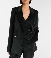 Achieve effortless elegance with Gabriela Hearst's meticulously tailored garments. The Angela cotton corduroy blazer features a classic double-breasted closure with sharp peak lapels and an elegantly defined waist. Product Details - Material: 100% cotton - Care instructions: dry clean - Made in Italy - Designer color name: English Green - Item color: green - Lining: 100% cupro - Peak lapel - Cuff: four buttons - Pockets: flap pockets, internal pocket - Closure: double-breasted (four buttons) - Vent: single - Item number: P01126017 Size & Fit - True to size - Shoulder pad inserts - Cinched waist - Non-stretchy fabric - Falls below the hip - The model seen in the picture is 178cm-5'10" and wearing a size IT 40