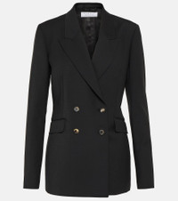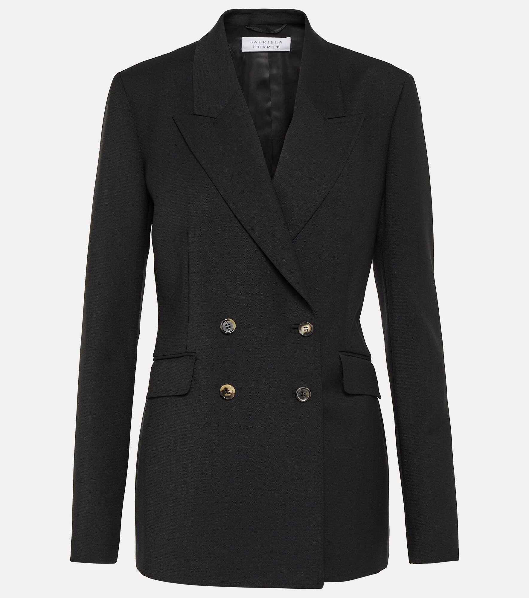 Achieve effortless elegance with Gabriela Hearst's meticulously tailored garments. Made purely from wool, the Angela blazer is a double-breasted piece with a fitted silhouette. Product Details - Material: 100% wool - Care instructions: dry clean - Made in Italy - Designer color name: Black - Closure: double-breasted buttoned front - Pockets: flap pockets - Interlining: 100% polyamide - Lining: 100% cupro - Item number: P00756123 Size & Fit - True to size - Cinched waist - Mid-weight material - Falls below the hip - The model seen in the picture is 178cm-5'10" and wearing a size IT 40
