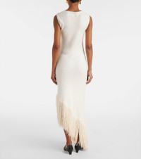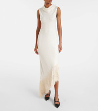 Awar Fringe Maxi Dress in Ivory Silk Boucle