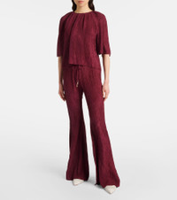 Claude Flare Pant in Bordeaux Plisse Silk