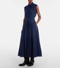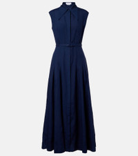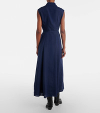 Durand Pleated Maxi Shirtdress in Electric Navy Linen