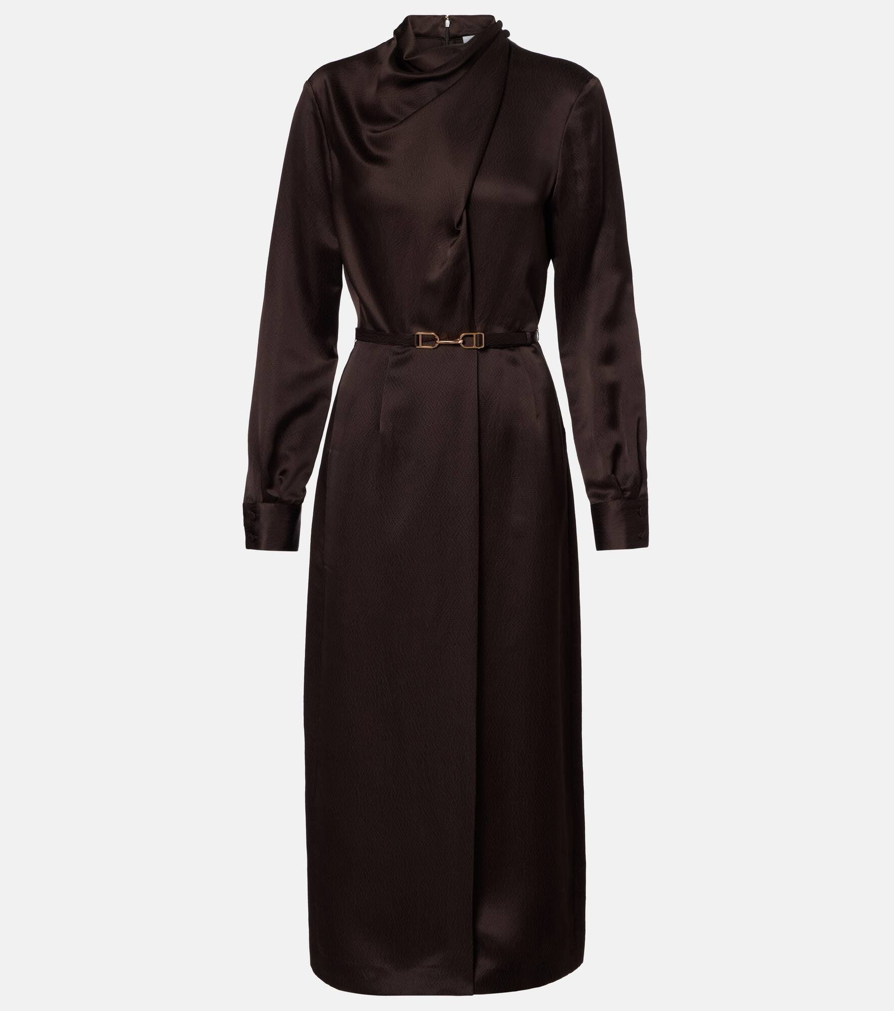 Gabriela Hearst's designs are all carefully constructed, showcasing an uncompromising dedication to quality and craft. The Josef midi dress is crafted from silk and boasts a belted waist. Product Details - Material: 100% silk - Care instructions: dry clean - Made in Italy - Designer color name: Chocolate - Item color: brown - Details: 100% silk - Hardware color: gold - Detachable belt - Cuff: two buttons - Closure: concealed zipped back - Long vent - Item number: P01085867 Size & Fit - Fits large to size - we recommend trying one size smaller - Cinched waist - Adjustable at the waist - Non-stretchy fabric - slit length 57cm-22.5" - The model seen in the picture is 178cm-5'10" and wearing a size IT 38
