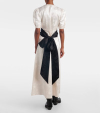 The Larkin midi dress from Gabriela Hearst is defined by its dainty silhouette, featuring balloon sleeves and a contrasting self-tie cinched waist. Crafted from silk, the white design is adorned with a delicate jacquard floral motif throughout. Product Details - Material: 100% silk - Care instructions: dry clean - Made in Italy - Color: white - Designer color name: Ivory/Black - Item color: white, black - Cuff: buttoned - Closure: concealed zipped side - Collar: V-neck - Attached belt - Item number: P01126010 Size & Fit - Fits large to size - we recommend trying one size smaller - Cinched waist - Adjustable at the waist - Non-stretchy fabric - The model seen in the picture is 178cm-5'10" and wearing a size IT 38