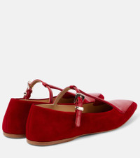 Liv Patent Leather-trimmed Suede Mary Jane Ballet Flats