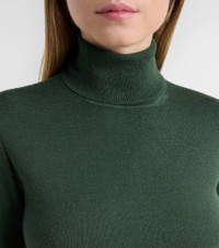 Gabriela Hearst's designs are all carefully constructed, showcasing an uncompromising dedication to quality and craft. The May turtleneck top is no exception, presented in a soft blend of wool, cashmere, and silk. Product Details - Material: 80% wool, 10% cashmere, 10% silk - Care instructions: dry clean - Made in China - Designer color name: English Green - Item color: green - Collar: turtleneck - Item number: P01126023 Size & Fit - True to size - Fitted - Stretchy fabric - Falls to the hip - The model seen in the picture is 178cm-5'10" and wearing a size XS