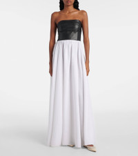 Lehti strapless linen and leather maxi dress Black