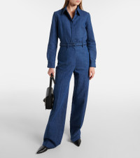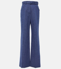 Product Details - Material: 62% cotton, 28% linen - Care instructions: dry clean - Made in Italy - Designer color name: Denim Blue - Lining: 100% cotton - Closure: zipper fly, button and hook fastenings - Detachable belt - Pockets: side slit pockets, back pockets - Item number: P00954531 Size & Fit - True to size - Non-stretchy fabric - Wide-leg - High-waisted - The model seen in the picture is 178cm-5'10" and wearing a size IT 40